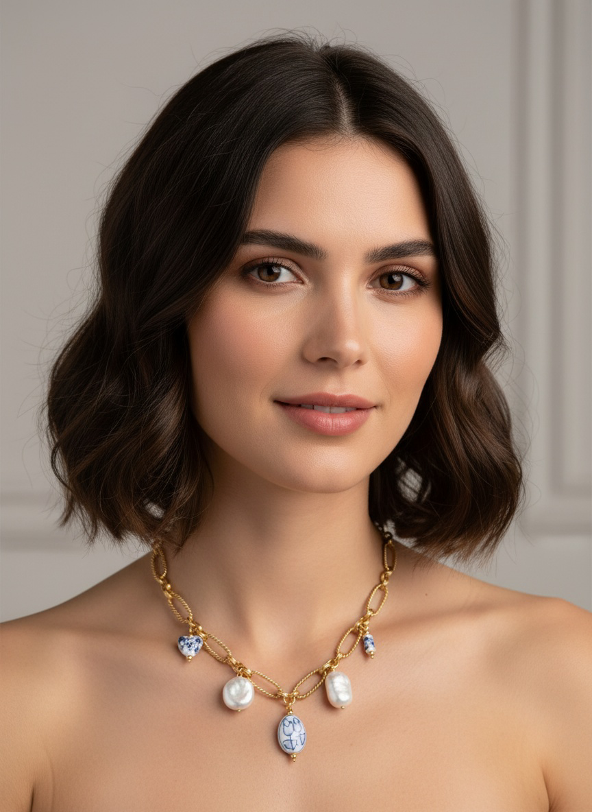 Handbemalte Keramikhalskette 18 Karat Vergoldet