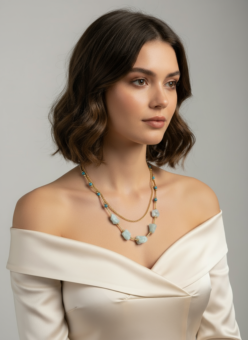 Mehrlagige Halskette mit Mondstern 925er-Sterlingsilber