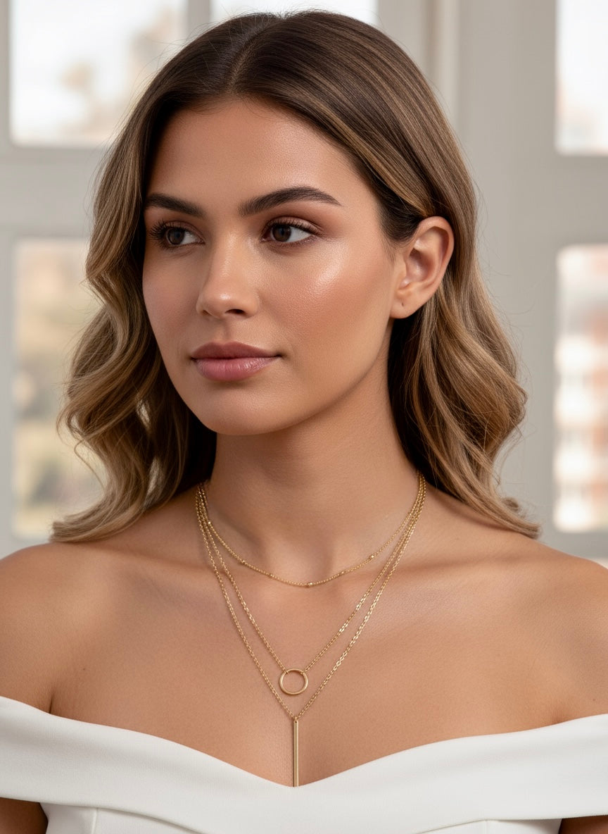 dreilagige Halskette 18 Karat vergoldet